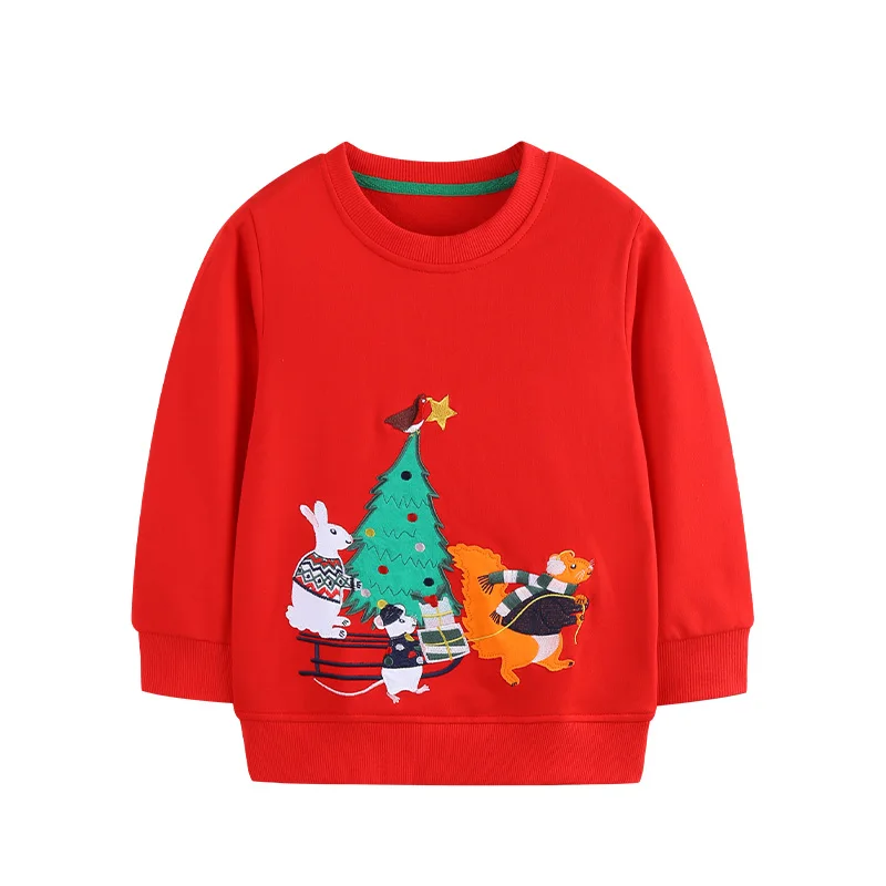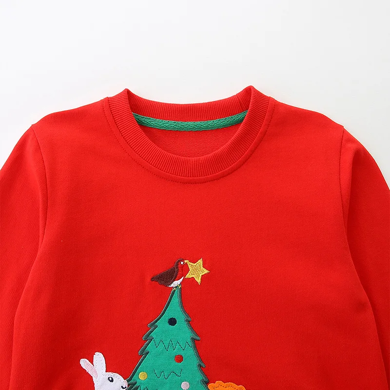 Autumn New Arrival Euro-American Style Girls’ Sweatshirt – Christmas Embroidery Toddler Pullover Kids’ Sports Top