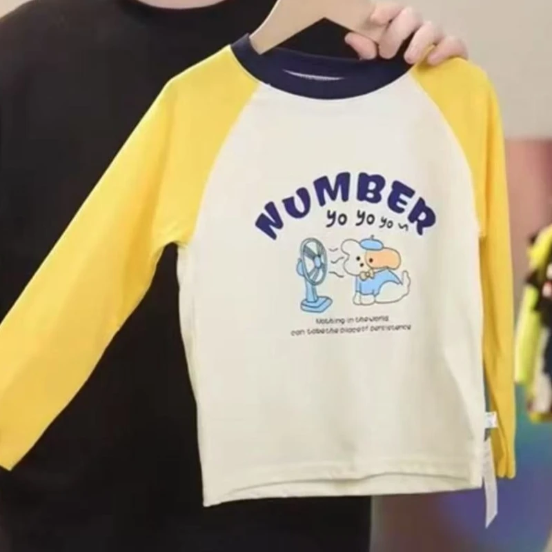 Autumn New Arrival Kids Boys’ and Girls’ Pure Cotton Color-Block Long Sleeve T-Shirt Baby Casual Fashion Children’s Basic Top