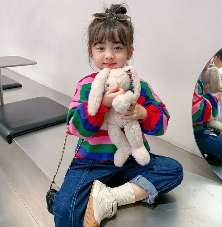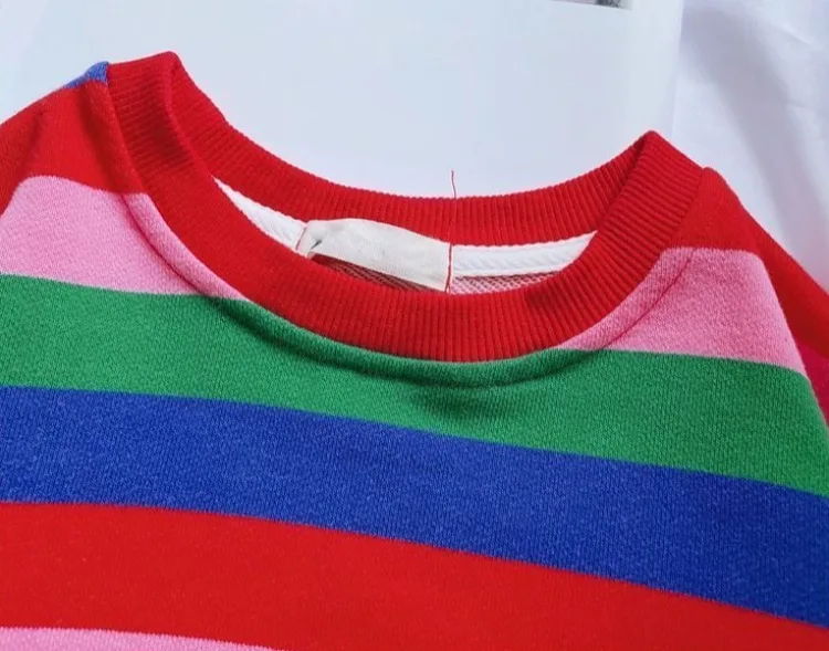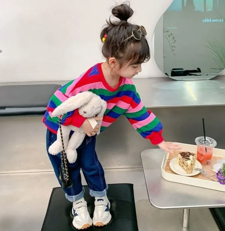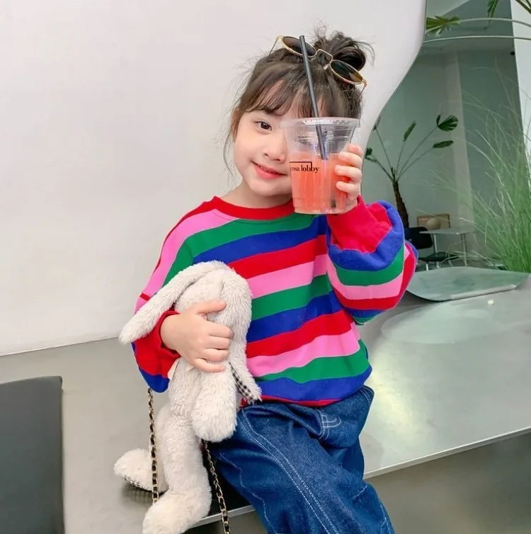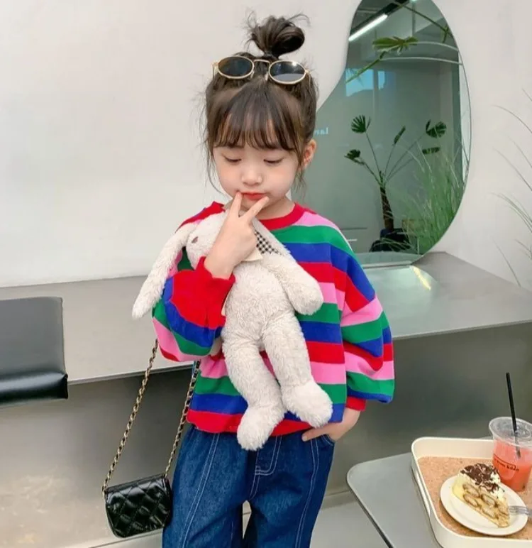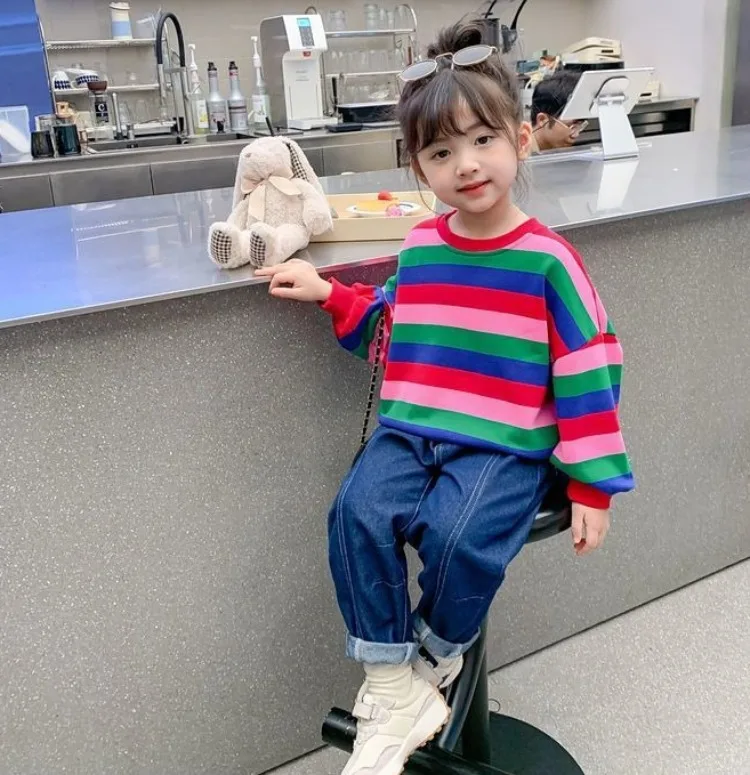 Girls’ Striped Crewneck Sweatshirt Spring Autumn Long Sleeve Loose Fit Versatile Thin Lightweight Outerwear Top New Arrival Kids